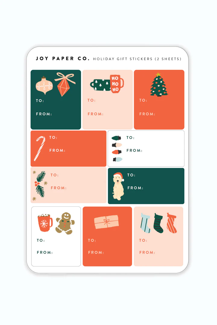 Add a chic finishing touch to your holiday gifts with our Holiday Gift Sticker Sheets. These beautifully designed holiday stickers double as elegant gift tags, bringing style and charm to every package and making your presents stand out under the tree.