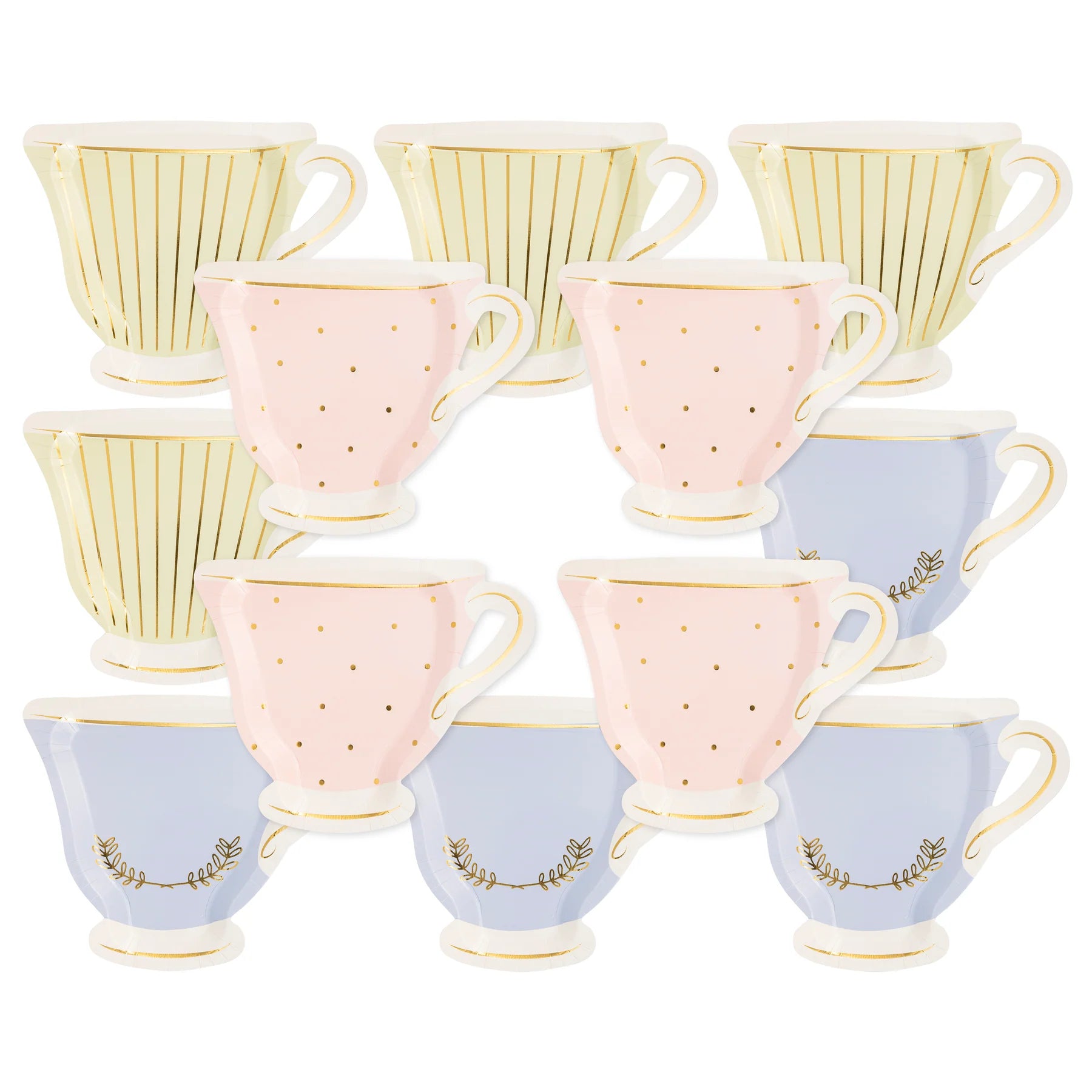 Sip on some fun with our Tea Party Cup Shaped Paper Plate! These charming plates, available in three adorable designs, have a playful tea cup shape and are adorned with shimmering gold foil. Perfect for any tea party or event, these plates bring a touch of whimsy to any gathering.